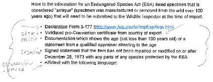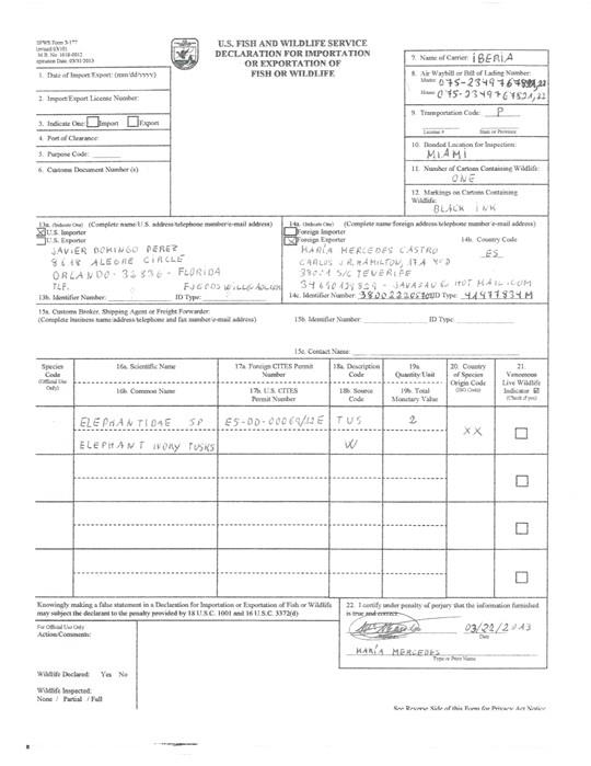 • U.S. Fish and Wildlife Service Declaration for Importation or Exportation of Fish or Wildlife – March 22, 2013